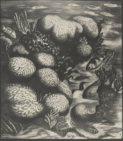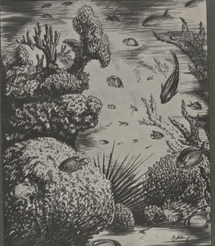 The fortunes of the Golden Cockerel Press began to go somewhat into decline at this time, partly due to Roberts spendthrift nature and partly because of the Wall Street crash, which saw a rapid decline in book sales in America. Moira now left Waltham and moved to South Africa, taking with her three of their four children. Robert sold his interest in the Press and for a time underwent some hardships, which seemed to have been relative as his son Patrick who remained with him later remarked that they still managed most weeks to get a hamper from Fortnums! Robert also found time to indulge in another of his pleasures, that of naturism, and he wrote illustrated articles for the ‘Sunbather'. He had an ongoing argument with George Bernard Shaw, another naturist, as to whether or not fig leafs should be worn. Robert' fortunes were again revived when he was given a teaching post at Reading University, beginning an association that he was to retain for the remainder of his life. Roberts interest in marine life had been stimulated greatly by his visits to the Pacific Islands and he spent many hours in the British Museum studying specimens. He wrote: